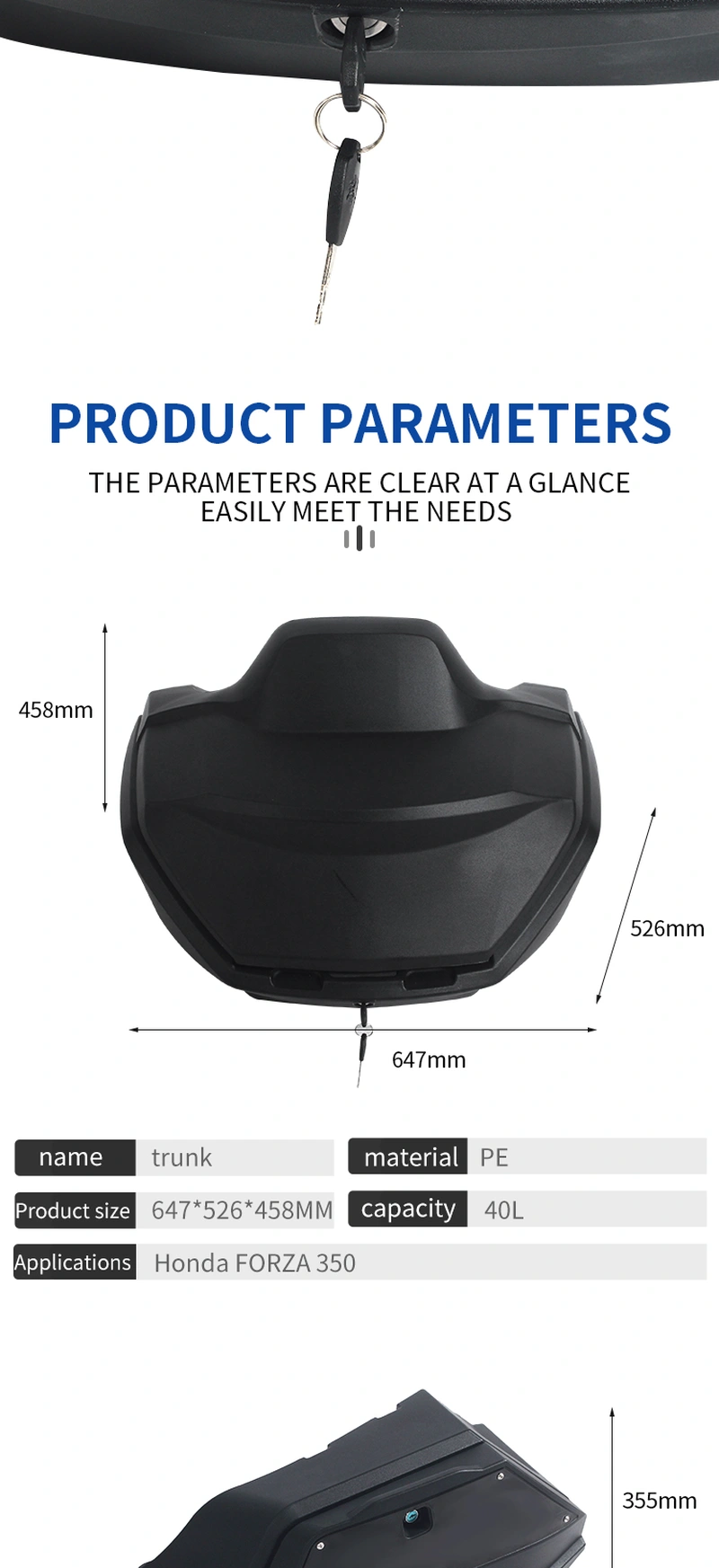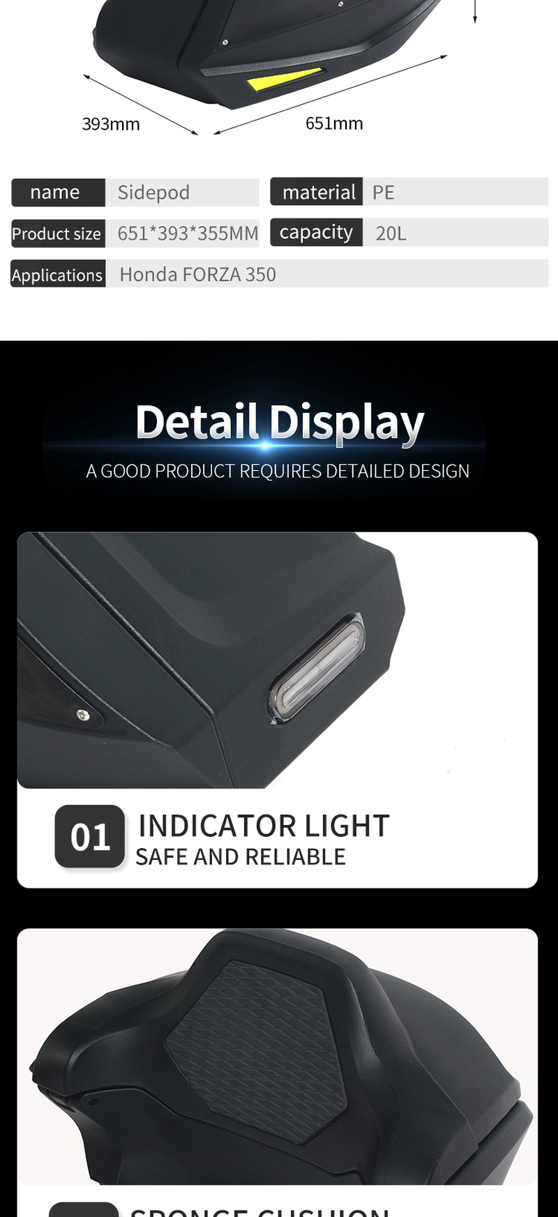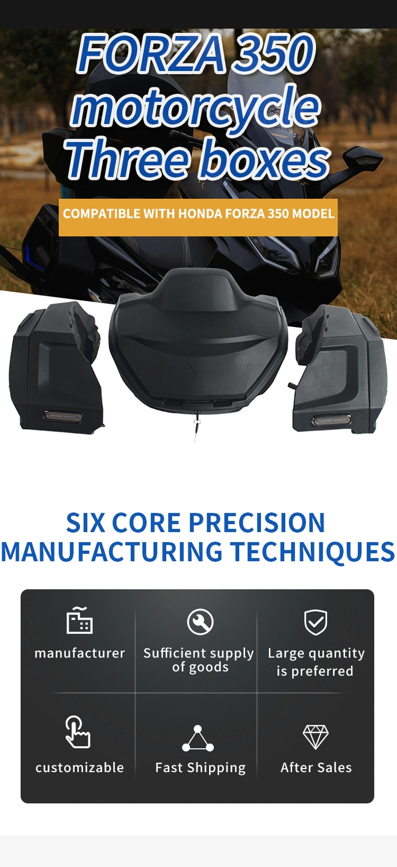 Product Description: The Honda FORZA NSS350 (Forza 350) Dedicated Three-Case Set is an OEM-standard storage solution custom-tailored specifically for the flagship Honda FORZA NSS350 touring scooter. It directly addresses the core pain points of limited factory storage space and the difficulty of carrying luggage during long-distance travel, comprehensively expanding cargo capacity. This makes it the premier aftermarket accessory choice for daily commuting, suburban cruising, long-haul motorcycle touring, and cross-regional riding.