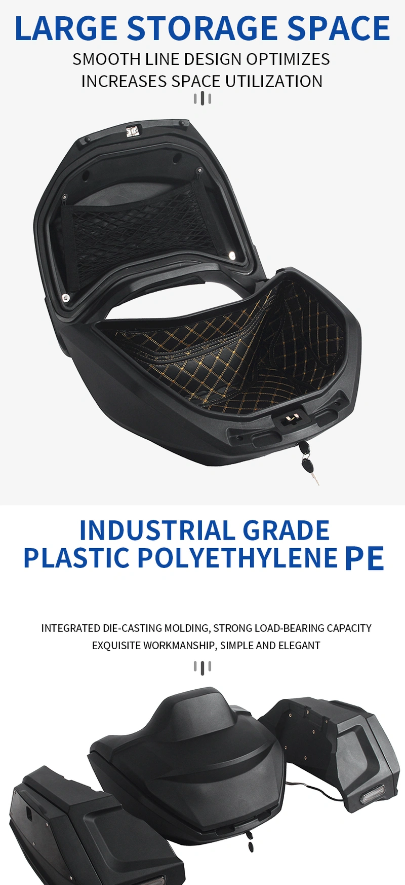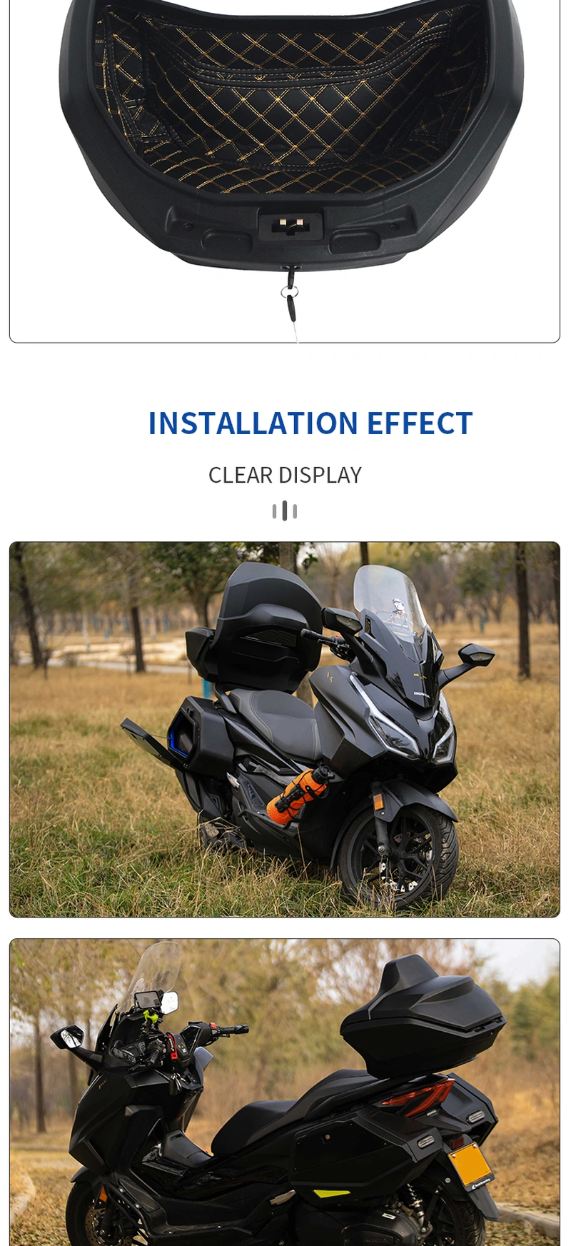 The Forza 350 Dedicated Three-Case Set features an integrated design combining side cases with a top case. The left and right side cases offer a combined practical storage volume of 58L, while the accompanying dedicated top case further expands the cargo area. This allows for the organized storage of full-face helmets, riding gear, personal effects, spare clothing, travel supplies, outdoor equipment, and more. It completely eliminates the frustrations associated with the limited factory storage, making the Forza 350’s flagship touring experience feel even more comfortable and effortless. The cases are integrally molded using industrial-grade PE material, striking a perfect balance between a lightweight body and robust load-bearing durability. They are scratch-resistant, impact-resistant, and tolerant of temperature fluctuations; even after prolonged use, they resist deformation and cracking. Furthermore, they boast exceptional sealing, waterproofing, dust-proofing, and moisture-proofing capabilities, ensuring that the contents remain dry and clean even when riding in the rain—making them perfectly suited for the complex road conditions encountered during long-distance touring and the rainy climates typical of Southeast Asia. Installation utilizes custom-designed mounting brackets that fit precisely onto the Forza 350’s original mounting points. This allows for a non-destructive installation process that requires no drilling or modification to the vehicle body. The cases hug the scooter’s flagship aerodynamic contours closely, ensuring a tight, rattle-free fit that generates no extraneous noise while riding, thereby preserving the vehicle’s premium aesthetic and riding stability. The unlocking system abandons traditional key-based operation in favor of a dual-mode mechanism—utilizing both passcodes and keyless access—offering unparalleled convenience while maximizing anti-theft security. It supports integrated turn signal alerts, synchronizing with the vehicle’s lighting system to enhance on-road visibility during lane changes and turns, thereby mitigating potential riding hazards. Furthermore, the system can be paired with an auxiliary fuel tank expansion kit to significantly extend the Forza 350’s cruising range for long-distance motorcycle touring, effectively meeting the demands of inter-city and inter-island journeys. With its core strengths of ample storage capacity, exceptional durability, ease of installation, robust protection, and vehicle-specific customization, the dedicated three-case luggage set for the Forza 350 perfectly complements the functional attributes of this flagship touring scooter. It stands as the premier choice for riders looking to upgrade their carrying capacity, optimize their riding experience, and elevate the overall style of their vehicle.