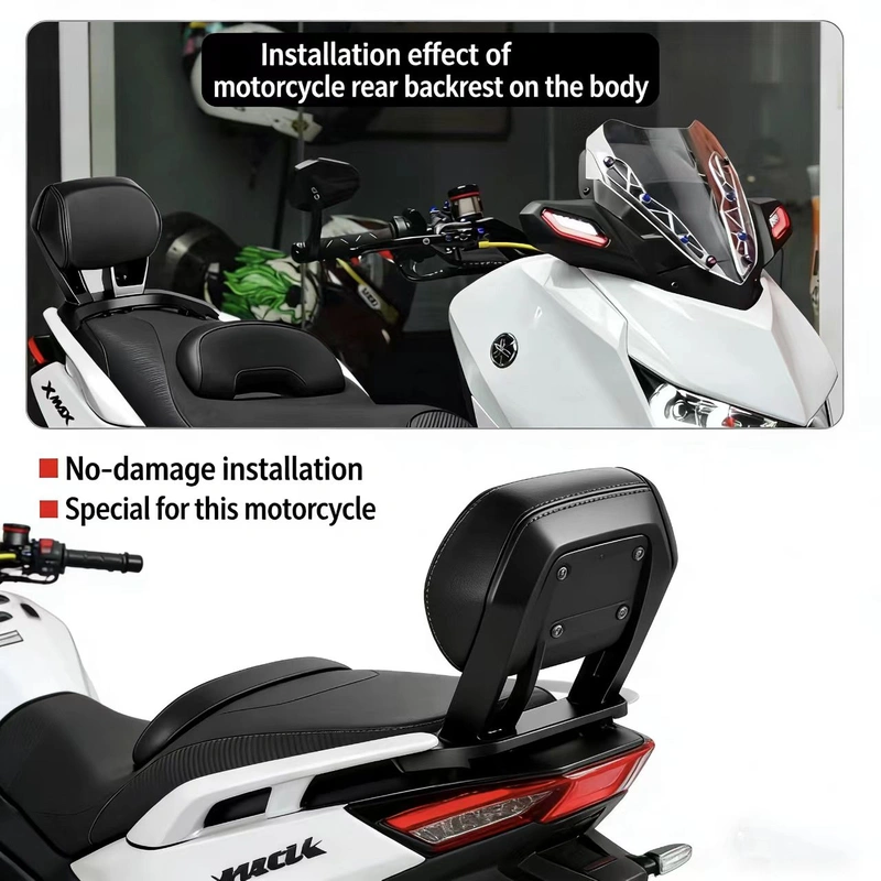 This product is a dedicated rear backrest designed specifically for the Yamaha XMAX300 (2018–2026+ models). Molded directly from the original vehicle, it ensures a perfect, seamless fit with the bodywork. The ergonomically designed lumbar support helps alleviate fatigue for the rear passenger during long-distance rides, while the high-resilience sponge padding significantly enhances riding comfort. Featuring a non-destructive installation process that requires no modifications to the original vehicle, it remains stable and wobble-free. Furthermore, it is waterproof, wear-resistant, and easy to clean, making it a practical upgrade accessory for enhancing the rear passenger experience.