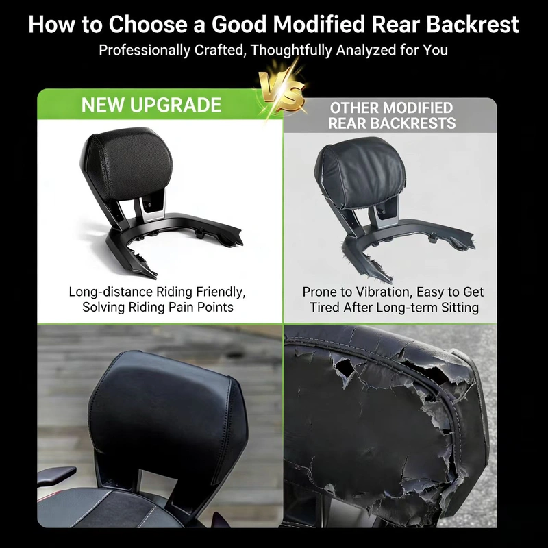 This product is a dedicated rear backrest designed specifically for the Yamaha XMAX300 (2018–2026+ models). Molded directly from the original vehicle, it ensures a perfect, seamless fit with the bodywork. The ergonomically designed lumbar support helps alleviate fatigue for the rear passenger during long-distance rides, while the high-resilience sponge padding significantly enhances riding comfort. Featuring a non-destructive installation process that requires no modifications to the original vehicle, it remains stable and wobble-free. Furthermore, it is waterproof, wear-resistant, and easy to clean, making it a practical upgrade accessory for enhancing the rear passenger experience.